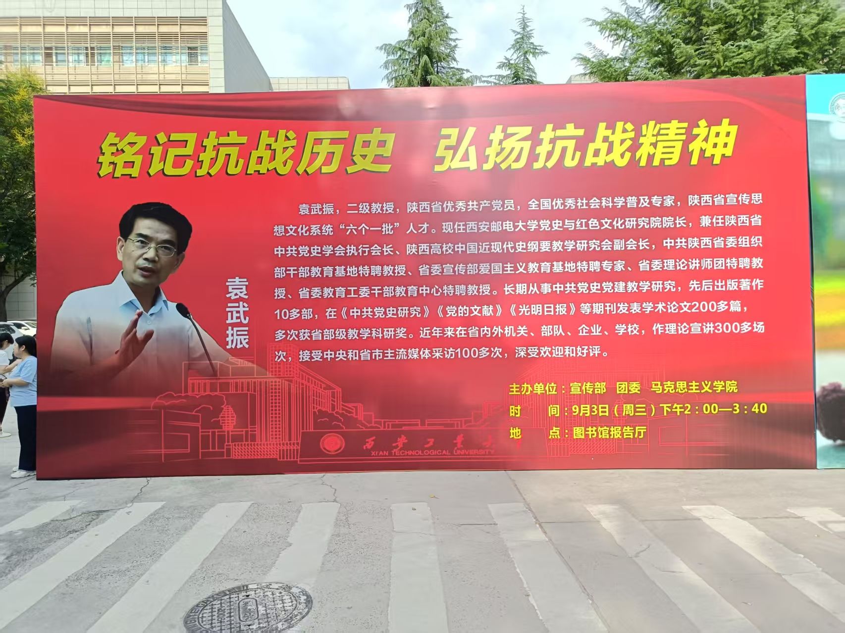 今年是中国人民抗日战争暨世界反法西斯战争胜利80周年。80年前,中国人民经过艰苦卓绝的抗日战争,彻底打败日本军国主义侵略者,宣告世界反法西斯战争的完全胜利。在中国人民抗日战争和世界反法西斯战争胜利80周年之际,学院联合党委宣传部、团委隆重举行纪念活动,邀请西安邮电大学党史与红色文化研究院院长袁武振教授来伟德betvlctor做专题报告,以铭记历史、缅怀先烈,弘扬伟大爱国主义精神、伟大抗战精神。