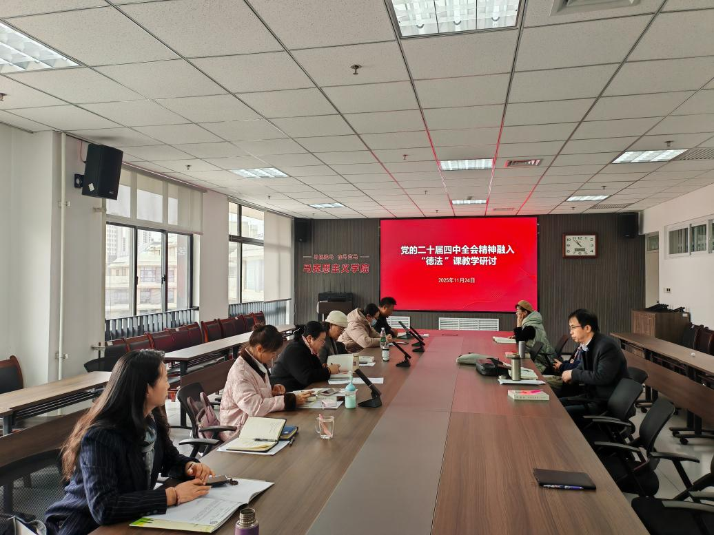 教师集中学习了党的二十届四中全会精神,将其与“德法”课教学紧密结合展开讨论,重点探讨如何将党的二十届四中全会精神有机融入课堂教学。老师们结合自身教学专题纷纷发言。李小雁教授认为,我们要落实二十届四中全会精神,坚决落实立德树人根本任务,实施立德树人“一号工程”,强化思政课一体化改革,推动教育改革和发展。刘俊丽教授认为,把党的二十届四中全会精神融入“德法”课程教学中,要将全会精神与学生的学习和成长成才结合起来,特别是用好陕西案例、本校案例这些身边的资源。通过学习中欧班列作为高质量共建“一带一路”的旗舰项目,它成为丝绸之路经济带上驰而不息的“钢铁驼队”,让学生更好领会全会精神内涵,加强社会主义核心价值观教育、爱国主义教育以及“四个自信”教育,筑牢学生在高质量发展中的使命和担当。杨丽华认为,党的二十届四中全会对扎实推进文化强国建设作出新的重要部署,强调要“弘扬和践行社会主义核心价值观”,这些内容可以融入专题五教学。张志英认为,在讲授坚定核心价值观自信时,强调要弘扬和践行社会主义核心价值观,以社会主义核心价值观引领文化建设。杨丽嫡认为,全会强调遵守道德规范,建设更高水平平安中国,健全养老事业和产业 ,在社会公德、职业道德、家庭美德教育中,融入全会强调的社会责任、诚信精神以及尊老爱幼的传统美德。带领学生从文化,制度,创新等各方面去思考社会需求,制定个人发展规划。将个人理想、价值实现、道德实践与社会发展需要紧密结合。范映红认为,在教学中深入贯彻全会精神,引导学生把握国家发展大局,增强家国情怀与责任担当,深刻理解高质量发展对高素质人才的迫切需求,进而激励他们立大志、明大德、担大任、成大才,为新质生产力发展注入青春动能。高峰老师认为,国家有规划,学生自身也要有计划,强国先强己,引导大学生把大学生活过好,有目标有步骤的提升自己。孙婳认为,要把党的二十届四中全会阐释“中国式现代化”宏伟蓝图与“阶梯式递进”的现代化过程有机融入专题三教学,引导学生将个人理想融入社会理想,坚定为实现中华民族伟大复兴而奋斗的信念。葛峰认为,二十届四中全会党中央所提出来的奋斗目标,启发我们要闯关。闯关成功,中国就会变成中等发达国家。如果闯关不成功,那么中国就会陷入中等收入陷阱。西方国家未来几年会给我们设置各种前进道路上的障碍。我们在前进道路上要坚定信仰、信念、信心。这一点在专题三的教学中要强调。赵东指出,要把党的二十届四中全会精神融入“德法”课程理论教学与实践教学全过程,讲好当代中国发展故事,应注重课堂教学方法创新,通过情景教学、案例分析、小组讨论等形式,让学生在真实情境中感悟制度优势与理论伟力,不断提升思想认同感。