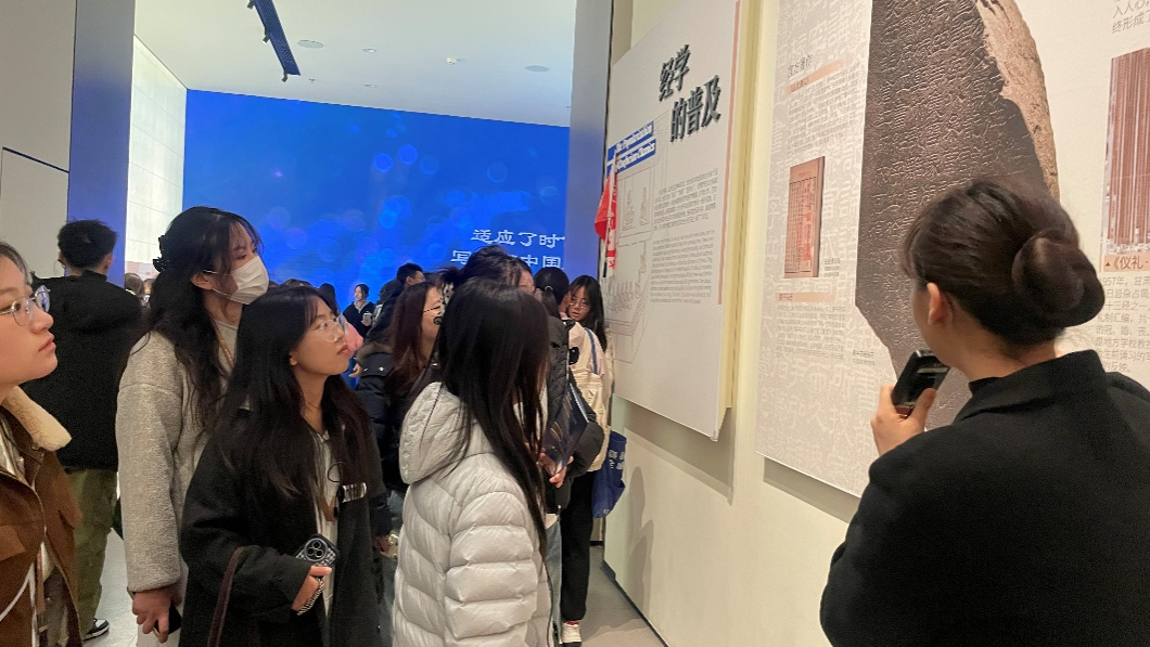 从气势恢宏的秦兵马俑到铭刻律法的竹简木牍,从精美绝伦的汉代器皿到东西方文化交流的丝路遗珍,从秦统一度量衡的青铜诏版到鲜活灵动的汉代乐舞俑,这些精美的文物共同构筑起波澜壮阔的文明长廊。“记忆里的‘大一统’在文物前变得鲜活可感”“科技让千年文明‘活’了起来”,同学们和老师们在参观过程中热烈地探讨科技与历史文化的完美融合。